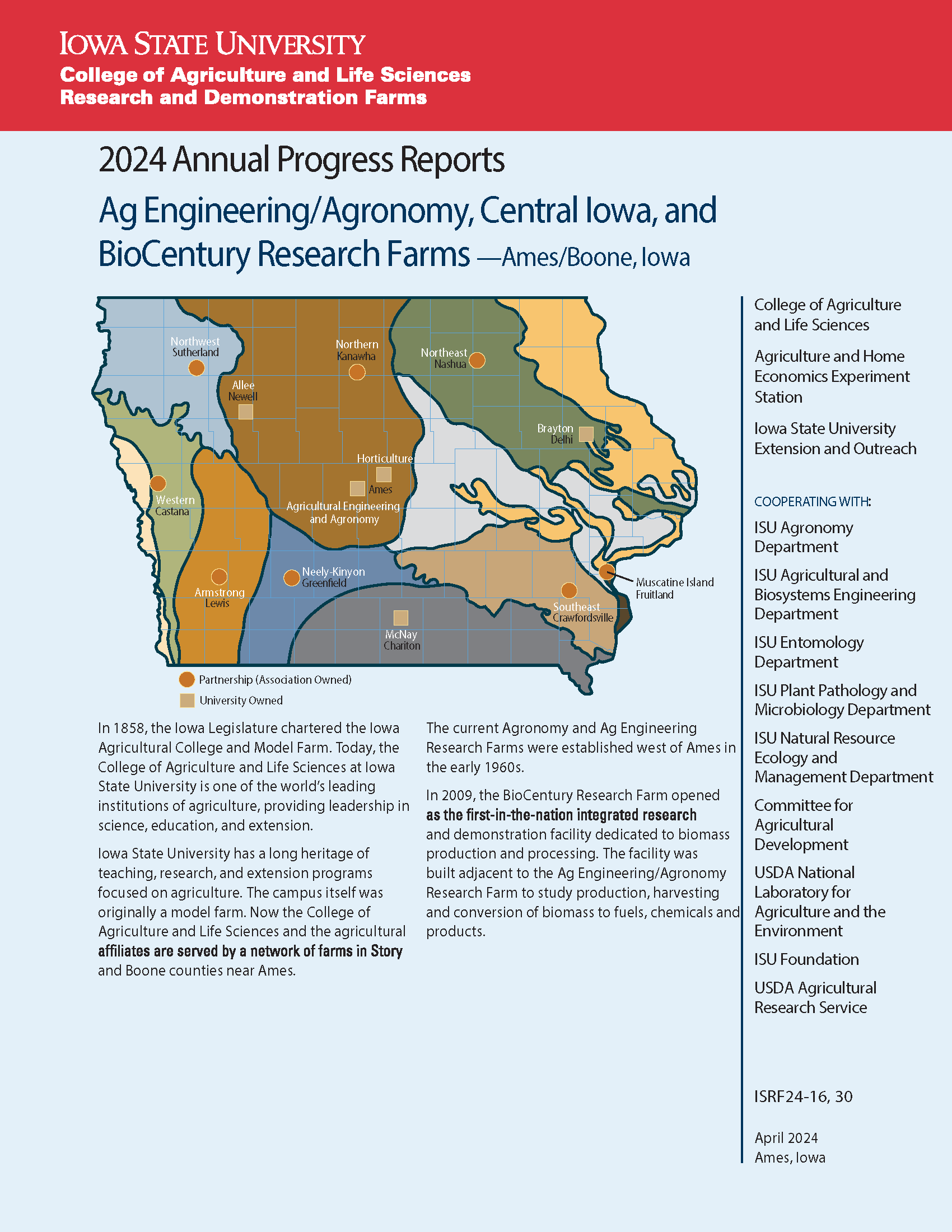 Ag Engineering/Agronomy, Central Iowa, and BioCentury Research Farms: 2024 Annual Progress Reports10 items